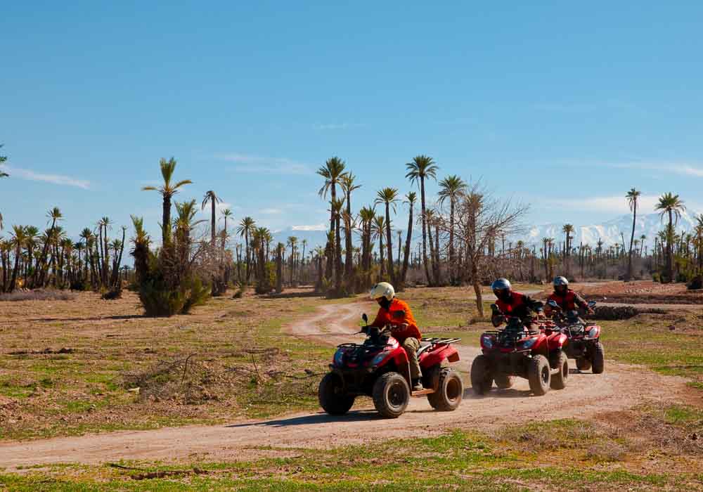 Un circuit demi journée Quad ou Buggy sur les plaines rocailleuses et désertiques à travers la palmeraie de Marrakech entre les oueds et les palmiers. Aux commandes de votre quad ou buggy, vous explorerez les villages berbères des environs tout en profitant des superbes paysages du Haut-Atlas. Un thé à la menthe chez l’habitant vous sera offert où l’accueil et l’hospitalité des habitants sauront vous surprendre.